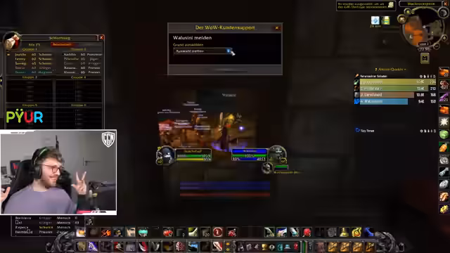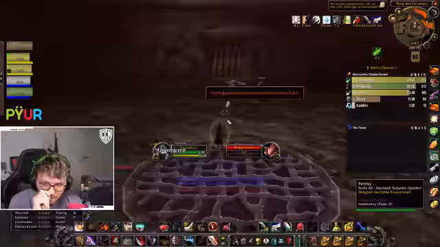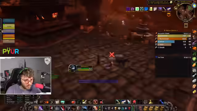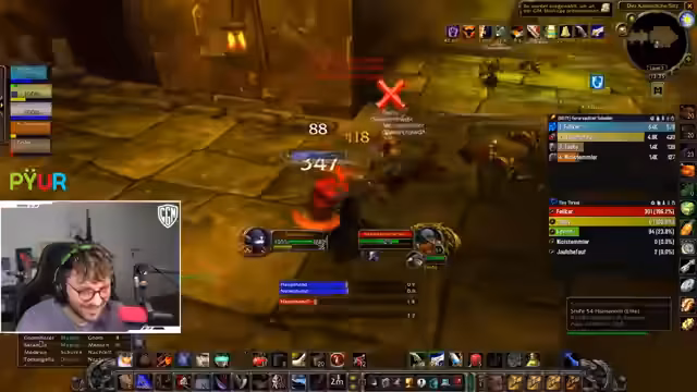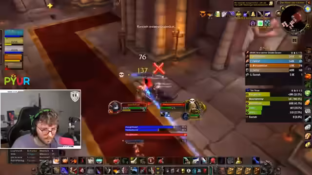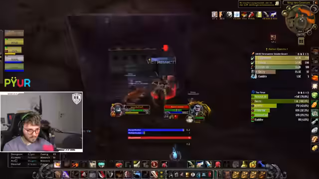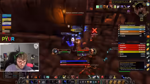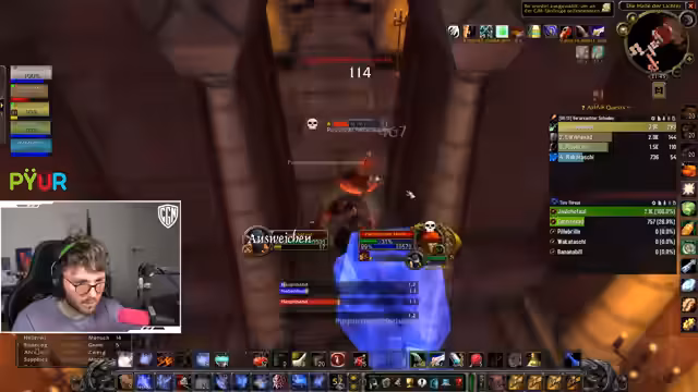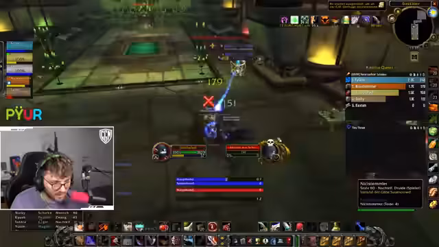06:15:43Ein unerwartetes technisches Problem unterbricht den laufenden Dungeon-Run. Der Streamer ist versehentlich nicht stummgeschaltet und stört dadurch die Kommunikation. Nach einer kurzen Entschuldigung und einer Pause wird der Plan für den Rest des Dungeons neu justiert. Die Gruppe entscheidet sich, eine bestimmte Mob-Gruppe anders zu pullen, um die anstehenden Herausforderungen besser zu meistern. Nachdem der technische Fehler behoben ist, wird der Kampf mit neuer Taktik und Fokus fortgesetzt, um den Dungeon erfolgreich abzuschließen.