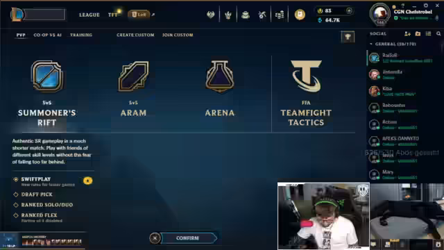 00:01:04Der Stream beginnt mit einer lockeren Begrüßung und Neckereien zwischen den Teilnehmern bezüglich ihres Alters und ihrer Elo in League of Legends und Valorant. Chefstrobel, selbst 30 Jahre alt, scherzt über die Fähigkeiten der anderen und kündigt das 'Jung vs Alt' Event an, bei dem in League of Legends und Valorant gegeneinander angetreten wird. Es wird erwähnt, dass einige Teilnehmer, insbesondere im Valorant-Bereich, wenig bis keine Erfahrung haben, was zu zusätzlichen Handicaps für die erfahreneren Spieler führt. Die Teams werden eingeteilt und Handicaps für das erste League of Legends Spiel festgelegt, darunter das Festlegen einer ungewohnten Rolle für einen Spieler und das Spielen mit gelockter Kamera. Es gibt Diskussionen über Champion-Bans und Strategien, um die Herausforderungen auszugleichen und ein faires Spiel zu gewährleisten. Der Einsatz für das Gewinnerteam sind 20 Kapseln von Sapsule und Riot Games.