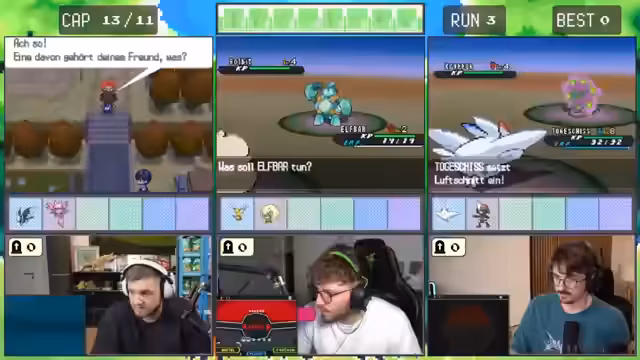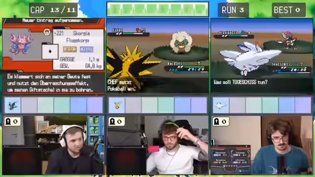 05:11:51Ein schwacher Drache mit Drachenwut wird als bessere Option angesehen als normale Starter-Pokémon. Es wird über die Beute und den Einsatz von Sonderbongees diskutiert, während der Streamer auf den Start des ersten Arena-Leiters wartet. Das Team ist bereit, jedoch gibt es Bedenken hinsichtlich der gegnerischen Pokémon, insbesondere eines Eis-Pokémons, das als problematisch eingestuft wird.