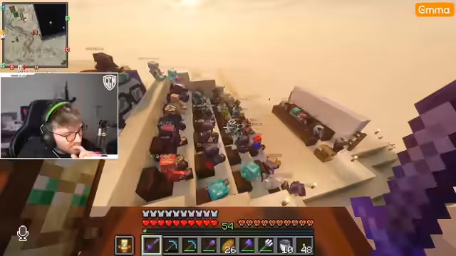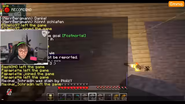 01:43:54Ein Spieler prahlt mit der großen Menge an gesammeltem Kupfer und kündigt an, einen beeindruckenden Copper-Golem bauen zu wollen. Es wird diskutiert, ob andere Spieler ebenfalls Copper-Golems bauen möchten, aber es scheint, dass nur dieser eine Spieler das Projekt verfolgt. Ein anderer Spieler berichtet, dass er in ein 'Manhunt'-Spiel geraten ist, bei dem er von anderen Spielern verfolgt und geschlagen wird. Es kommt zu humorvollen Kommentaren über Dating-Plattformen und Banns wegen unangemessenen Verhaltens. Ein Spieler schlägt ein Experiment vor, bei dem ein anderer Spieler versucht, den Enderdrachen unter dem Einfluss von THC-Weingummis zu besiegen. Die Diskussion geht weiter über die Projekte der Streamer, wobei ein Spieler nur 'Money-Aufträge' annimmt und ein anderer einen Massentransport von Kisten plant.