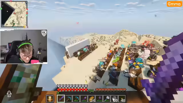 01:48:11Es wird über einen Deal zwischen zwei Spielern gesprochen, bei dem es um die Beschaffung von sechs Doppelkisten Kupfer geht. Die Dauer und der Aufwand für diese Aufgabe werden diskutiert, wobei ein Spieler das Gefühl hat, überbezahlt worden zu sein. Ein Spieler erwähnt, dass er einen schönen Turm gebaut hat und plant, weitere in diesem Stil zu errichten. Die Suche nach Packed Ice wird zu einem weiteren Thema, da es für den Bau der LoL-Map benötigt wird. Ein Spieler berichtet von seinem Hund, der Geräusche macht und wahrscheinlich Hunger hat. Die Streamer tauschen sich über ihre Fortschritte und die Herausforderungen bei der Materialbeschaffung für ihre Projekte aus, wobei die Notwendigkeit, große Mengen an Ressourcen zu farmen, immer wieder betont wird.
