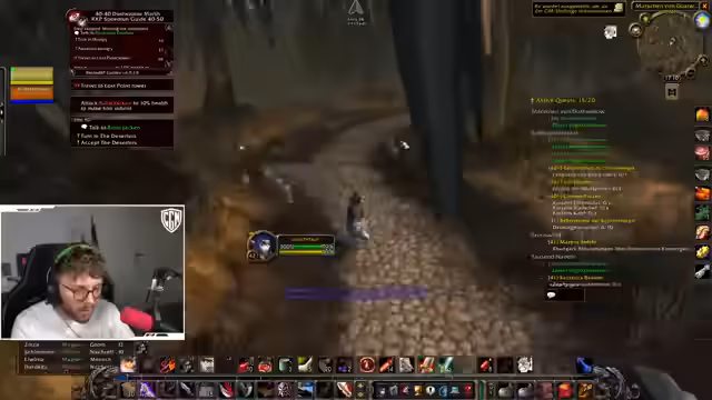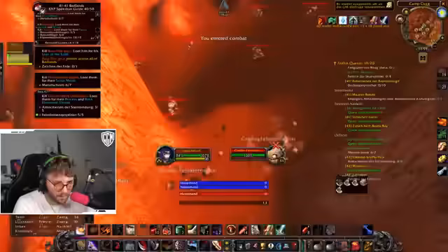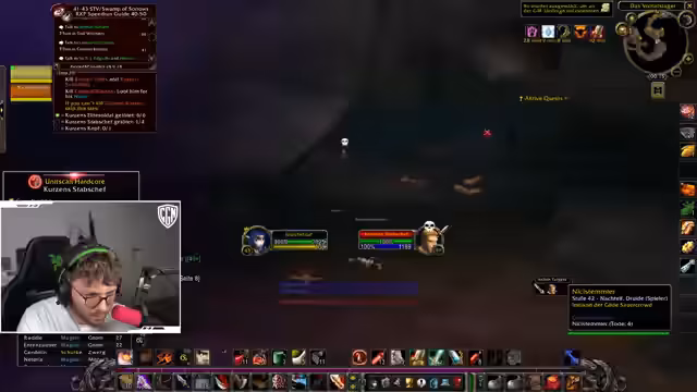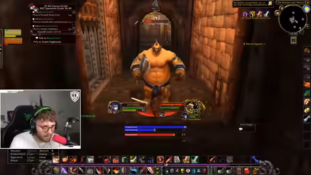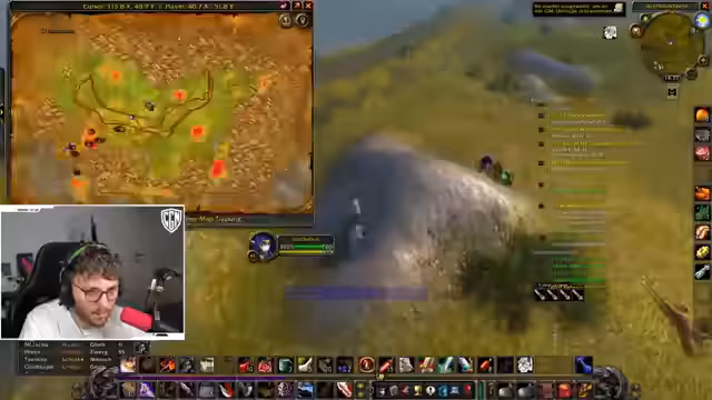 04:57:03Die Planung für eine anspruchsvolle Elite-Quest in Desolace steht im Mittelpunkt. Der Streamer sucht aktiv nach einem dritten Mitspieler, um die Quest sicher zu absolvieren, da sie für nur zwei Spieler als zu riskant gilt. Die Suche erfolgt über die Gildenmap und direkte Anfragen. Es wird die Strategie für den Kampf gegen den Boss mit seinen Wellen von Gegnern besprochen, wobei die Rollenverteilung (Tank, DPS, Heiler) und der Fokus auf den Caster als Priorität festgelegt wird.