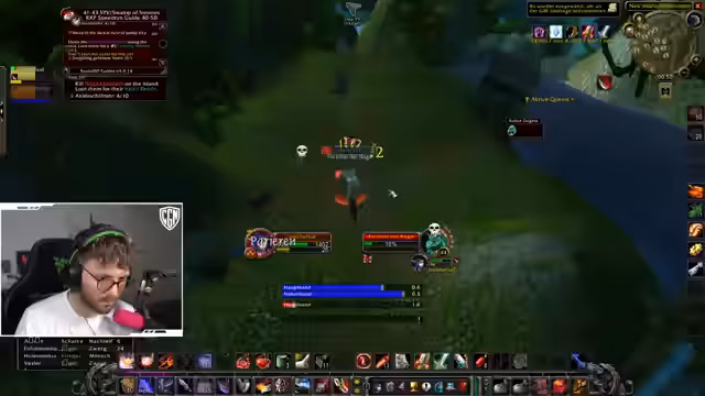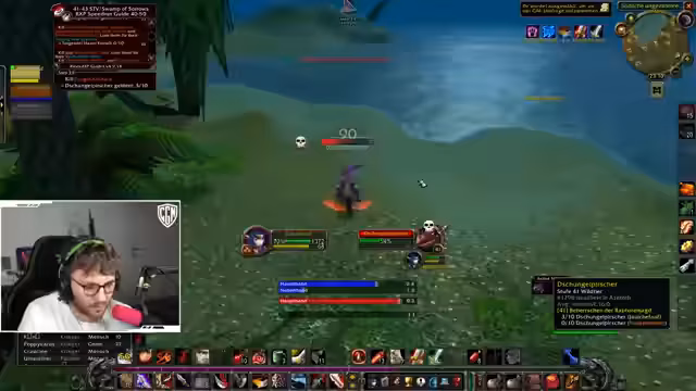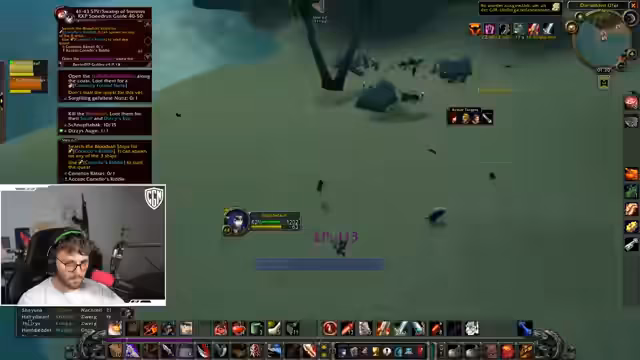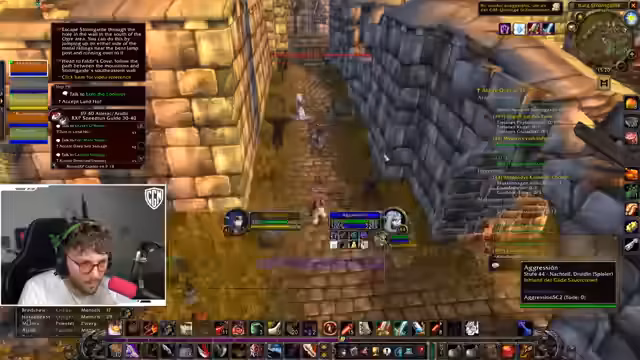 10:04:28Während des Questens in Stranglethorn wird ein Bug in der Booty-Bay-Ship-Quest entdeckt. Der Streamer erklärt, dass das Laufen über die Reling am Heck der Schiffe versehentlich alle Mobs auf dem Schiff aggroiert. Entgegen den Erwartungen ist die Quest selbst kein besonders schwieriger Kampf, sondern ein reines Loot-Szenario. Diese Information wird geteilt, um das Farmen für andere Spieler zu optimieren und unerwartete Schwierigkeiten zu vermeiden.