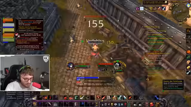 11:32:17Ein kritischer Moment ereignet sich, als ein unkontrollierter Pull zu einem Überfall der Gegner führt und der Streamer in große Gefahr gerät. Durch schnelles Handeln, Fluchtversuche und einen unerwarteten Heil-Zauber von einem Spielcharakter kann er gerettet werden. Dieser spannungsgeladene Moment wird mit „Heilige Scheiße!“ kommentiert und hebt die Wichtigkeit von Teamwork und etwas Glück im Gameplay hervor.
