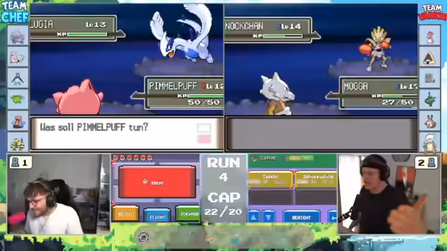 00:22:58Nach dem Rückschlag wird die Suche nach neuen Pokémon fortgesetzt. In der Höhle wird ein Elektek gefunden, welches als extrem stark und eines der Lieblingspokémon der Streamer gilt. Die Freude über diesen Fund ist groß. Parallel wird die Frage der statischen Pokémon-Distribution im Team diskutiert. Die Streamer überlegen, ob sie ihre Hauptpokémon auf Level 14 bringen, während die restlichen Teammitglieder auf Level 12 bleiben sollen, um die Level-Caps zu respektieren und für den bevorstehenden Arenaleiterkämpfe gewappnet zu sein.