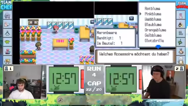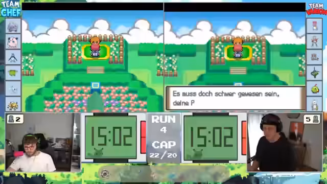 00:00:45Der Stream wird gestartet und begrüßt das Publikum. Die Streamer sind in Pokémon Soul Link Randomizer gelinkt und spielen Pokémon Platin. Die grundlegenden Regeln werden erklärt: Alle Pokémon sind gerandomisiert, das Spiel ist deutlich schwerer, es gibt Level Caps, um Overleveln zu verhindern, und der wichtigste Punkt ist die Link-Funktion. Bedeutet, wenn ein Streamer ein Pokémon auf einer Route verliert, ist das Pokémon des anderen automatisch auch tot. Der Fokus liegt auf der strategischen Pokémon-Auswahl und dem Leveln innerhalb der vorgegebenen Limits.