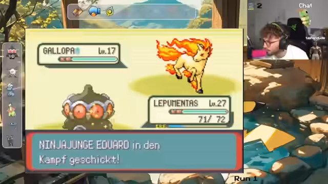 01:12:59Der Streamer kämpft gegen den Kraftwerk-Manager, dessen Pokémon starken Schaden anrichten. Es finden mehrere Tauschaktionen statt, um den Kampf zu meistern. Ein Pokémon wird verwirrt, was den Kampf erschwert. Nach anfänglichen Schwierigkeiten wird der Manager besiegt, und ein neues Pokémon namens Remorita wird ins Team integriert, das später Psystrahl, Blubbstrahl und Aurorastrahl lernen kann.