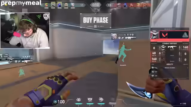 03:02:53Während des Spiels treten erneut technische Schwierigkeiten auf, die die Kommunikation behindern. Der Streamer ist unsicher über die Positionen der Gegner und muss sich mehrfach auf die Kartenansicht ('CAM') verlassen. Er diskutiert verschiedene Spielzüge, wie das Platzieren von Mollys in 'Tower', und ist verärgert über unkoordinierte Aktionen des Teams, die zum Verlust der Runde führen.
