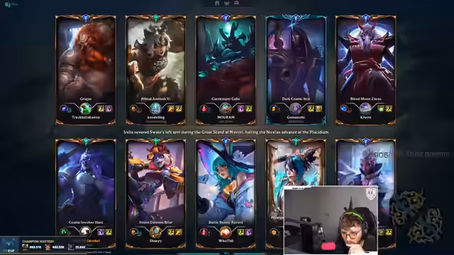 03:05:20Der Streamer fragt sich, warum alle Anti-Heal bauen und ob er das Item schon bekommen kann. Er überlegt, auf Top-Lane zu gehen. Es wird erwähnt, dass der Streamer nur bis 9 streamen wird. Es wird überlegt, ob Pimble Winter noch gebaut wird. Der Streamer würde lieber Black gehen. Der CC von denen ist krass. Es wird überlegt, ob der Aphelios es hat. Der Streamer will Lukas erreichen. Es wird erwähnt, dass es sein allererstes Rank für heute war. Es wird überlegt, ob man Random Agent Rant spielen soll. Der Streamer fragt sich, wie viel Damage der Gegner macht. Er wird schnell weggekrittet und überlegt, ob er Randoins bauen soll. Der Streamer baut Randoins und verkauft Eisbau und Gauntet. Es wird überlegt, ob irgendjemand den Bastard one-shotten kann. Der Streamer wurde mal kurz eingeschult. Es wird überlegt, ob man noch Eloi spielen soll. Der Streamer will nicht schon wieder Eloi spielen, sondern hätte eher Bock auf Zed.
