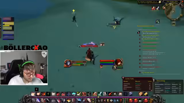 11:52:36Während des Bosskampfs gerät der Streamer und seine Gruppe in eine chaotische Situation. Er wechselt die Fokusziele und versucht, die Aggro zu kontrollieren. Es kommt zu mehreren Spawn-Gegnern und dem Verlust der Kontrolle über die Bedrohung. Der Streamer macht mehrere Fehlversuche, die Bedrohung mit Kicks zu kontrollieren, was zu massivem Aggro-Verlust und gefährlichen Situationen für die Gruppe führt.