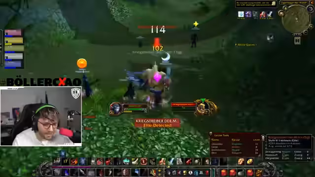00:00:00Zu Beginn werden anstehende Quests besprochen, darunter die Notwendigkeit, Armschienen von Elementaren zu sammeln und Kristallsplitter sowie Ohren zu sammeln. Murlocks werden aufgrund der komplizierten Tauchmechanik und Elite-Status übersprungen. Der Chat wird nach Materialbedarf wie Muschelfleisch für die Gildenbank befragt. Parallelen zum Todesfall von Ronny Zwerger werden gezogen, der die Gruppe verlassen hat, wobei der Streamer als einziger Zwerg auf Level 35 verbleibt und nach weiteren Questgegnern sucht.