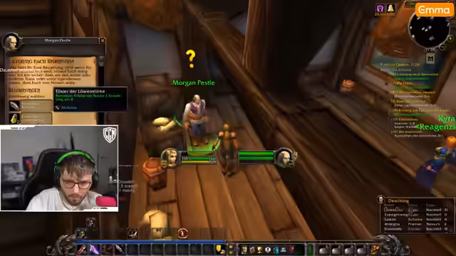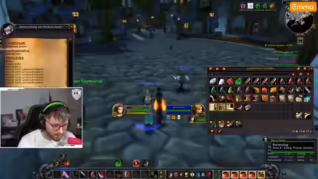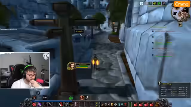 05:24:16Der Streamer ist beeindruckt von der Kreativität der Spieler, die es schaffen, Bosse in Städte zu locken, und äußert Respekt für solche Leistungen. Es wird über die Notwendigkeit gesprochen, nach Sturmwind zu reisen, um Fähigkeiten zu leveln und Berufe wie Kürschnerei und Lederverarbeitung zu erlernen. Die Gefahr des Verlusts von Gold und Charakteren im Hardcore-Modus wird thematisiert, wobei der Streamer betont, dass der Spaß der Spieler Priorität hat. Es wird nach Spielern gesucht, die bereit sind, um 4 Uhr morgens an einem Dungeon teilzunehmen, wobei der Streamer seine gute Ausrüstung, aber sein niedriges Level hervorhebt. Die Community wird um Unterstützung bei der Suche nach Quest-Gegenständen und der Planung zukünftiger Events gebeten.