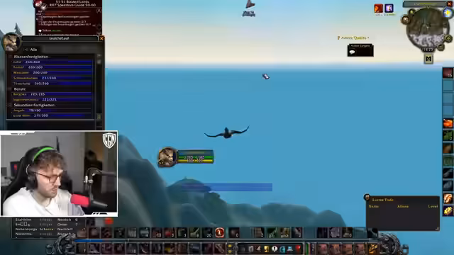 00:00:00Der Stream beginnt mit Diskussionen über WoW-Quests. Es werden die Erfahrungen bei der Schurken-Quest geteilt, insbesondere ein Elite-Mob hinter einer Kiste, der bei zu niedrigem Lockpicking-Level einen tödlichen Gegner freilässt. Die Beute wird besprochen: Es werden Geiermuskelmägen und Feuer verbrannte Eberlunge zum Handel angeboten, wobei der Muskelmagen als nutzlos für den Streamer eingestuft wird. Der Streamer erwähnt sein Geistes-Ebers erhöhte Ausdauer, das einen guten Buzz verleiht, und der Chat lobt den Verlust von 9 von 11 Silber.