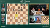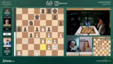 05:10:12Die Kommentatoren analysieren die Partie zwischen Fabiano Caruana und Hikaru Nakamura intensiv. Sie diskutieren die Gewinnstellung für Weiß nach Zügen wie Läufer E5, Läufer D5 und die daraus resultierende Dominanz. Nakamura als Schwarzer agiert passiv und vermeidet Fehler, aber die komplexen Manöver von Caruana führen zu einer Remis- oder Verluststellung. Es werden verschiedene Zugmöglichkeiten und deren Konsequenzen besprochen, wie zum Beispiel die Damenverfolgung und die Vermeidung des Damentausches.