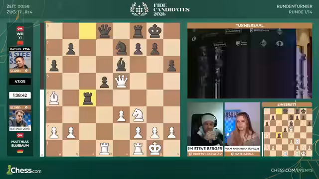 Endlich geht es los! Matthias Blübaum beim Kandidatenturnier ! Fide Kandidatenturnier 2026 ! Runde 1