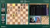 04:04:45Im Verlauf der Eröffnung entstehen erste komplexe Verwicklungen. Weiß opfert einen Bauern und gerät dabei in eine unklare, aber dynamische Stellung. Die Kommentatoren diskutieren über den Wert des Opfers und ob Schwarz den Mehrbauern verteidigen kann. Bei Schwarz werden taktische Schwächen, insbesondere ein gefesselter Turm auf F3, identifiziert, die zu einem Angriff führen könnten. Die Stellung bleibt ausgeglichen und erfordert genaues Abwägen von strategischen Plänen und konkreten taktischen Drohungen. Es stellt sich die Frage, ob das Qualitätsopfer für Schwarz nachhaltig ist.