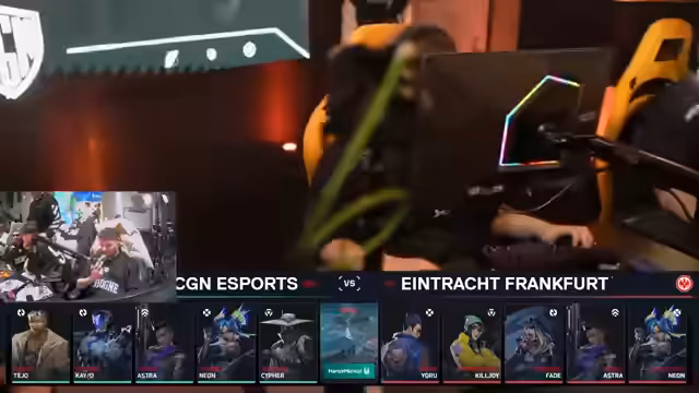 01:32:38In einem intensiven Grand Final zwischen Cologne (CGN) und Eintracht Frankfurt (SGE) hat CGN die ersten beiden Maps deutlich für sich entschieden. Kommentatoren bewerten das Auftreten von CGN als absolut dominant und fehlerfrei, was zu einem 2-0 Vorsprung führt. Die SGE kämpft sichtlich mit der Ausdauer und dem Selbstvertrauen, während CGN unbeeindruckt wirkt und seine strategischen Vorteile ausspielt. Die Atmosphäre ist geprägt von der Spannung, ob CGN das Spiel vorzeitig beenden kann.