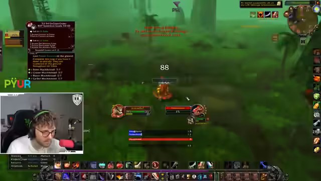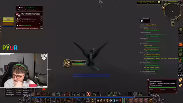00:00:00Zu Beginn des Streams geht es um die Organisation einer Gruppen für ein World of Warcraft-Event. Der Streamer bestätigt, dass Slakes Teil der Truppe ist, aber betont, dass ein weiterer Tank benötigt wird, da Slakes eventuell nicht pünktlich erscheinen kann. Nach einer kurzen Unterhaltung über die Gruppenmitglieder, darunter ein Mage namens Smill, wird der Fokus auf die aktuelle Position des Streamers verlagert. Er befindet sich in der Senkenden Schlucht, wo er mehrere Truhen öffnen möchte, was jedoch auf Probleme stößt, da er die Truhen nicht als verbuggt, sondern als übersehen ansieht. Es wird ein kleiner Rave erwähnt, der nach einer Feier stattgefand, und anschließend geht es weiter mit den Quests für den Tag.
