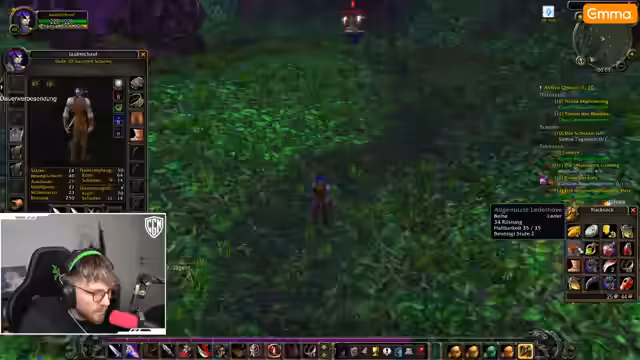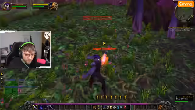 00:00:10Der Stream beginnt mit der Charaktererstellung eines Schurken namens Jaulmichauf, einem Nachtelfen. Ohne Erfahrung und Addons startet der Streamer ins Abenteuer. Nach anfänglicher Verwirrung über die Steuerung und Fähigkeiten lernt er, seine erste Fähigkeit, Finsterer Stoß, zu nutzen. Es folgen erste Kämpfe gegen Nachtsäbler, wobei er das Energiesystem und das Stacken seiner Fähigkeit kennenlernt. Der Fokus liegt auf dem Erlernen der Grundlagen wie Angriffe, Plündern und der Navigation in der Welt.