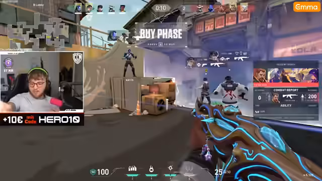 00:20:30Das erste Valorant-Match verläuft äußerst frustrierend für den Streamer. Er spielt mit einem 'Rumble-Team', in dem die Kommunikation stark mangelhaft ist, da niemand redet. Dies erschwert das koordinierte Spiel erheblich und führt zu einer drohenden Niederlage. Der Streamer beklagt, dass viele Spieler in Ascendant-Lobbys nicht kommunizieren und einfach vor sich hin daddeln, was das Teamplay stark beeinträchtigt. Er versucht, das Spiel zu carrien, stößt jedoch an seine Grenzen, da drei seiner Teammitglieder nicht mitspielen.