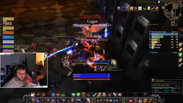 00:05:00Während des aktiven Dungeon-Runs in UBRS/LBRS gibt es intensive Diskussionen über Loot-Verteilung und taktische Strategien. Der Streamer koordiniert die Gruppe, gibt Anweisungen für Bosse wie den Feuerlord Urzai und interagiert mit anderen Spielern wie Rhyrex und Dalu. Es werden humorvolle Gespräche über persönliche Angriffe oder Discord-Übertragungen geführt, die nicht erlaubt sind. Dies unterstreicht die Kameradschaft und den gemeinsamen Spaß im Spiel.