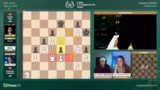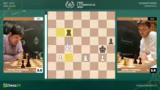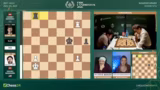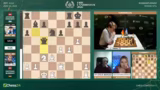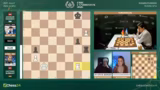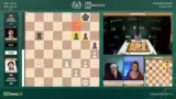 03:53:39Nach einem Remisangebot von Giri und der Ablehnung durch Caruana, der das Spiel noch fortführen will, geschieht ein entscheidender Fehler. Caruana macht einen ungenauen Zug, Springer F3, was Giri die Tür für einen starken Gegenangriff öffnet. Giri nutzt dies sofort aus, um mit seinem König auf die andere Seite des Brettes zu manövrieren. In der Zeitnot gerät Caruana komplett ins Schleudern und gibt die Partie schließlich auf, was Giri einen wichtigen Sieg beschert und ihn in das Turnier zurückholt.