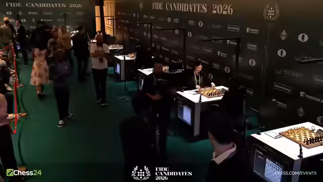04:19:30Die Kommentatoren fassen die Ergebnisse im Frauenfeld zusammen. Waishali führt mit 5,5 Punkten, gefolgt von Anna Muzychuk mit 5,0 Punkten. Die Partie zwischen Giri und Caruana ist offiziell zu Ende gegangen. Giri hat mit dem Sieg auf Caruana aufgeschlossen und ist nun mit anderthalb Punkten Rückstand der engste Verfolger von Sindarov. Caruanas Verlust ist dabei als bitter zu bewerten, da seine Titelträume im Kandidatenturnier damit vorerst geplatzt sind.