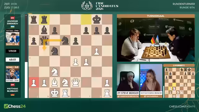 Kann Matthias Sindarov stoppen? Matthias Blübaum beim Kandidatenturnier 2026 ! Runde 9
