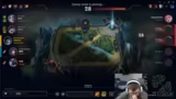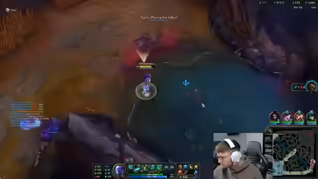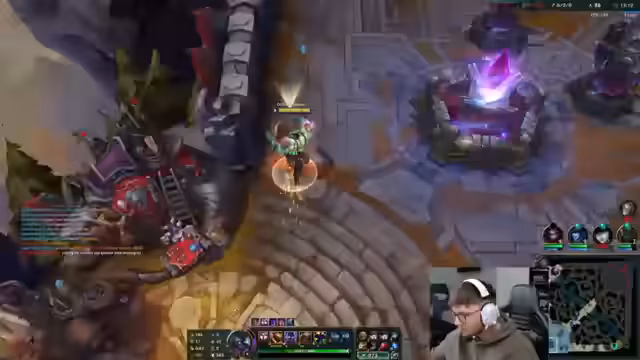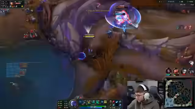05:30:16Zu Beginn des Stream-Segments konzentriert sich der Streamer auf sein aktuelles League of Legends-Spiel. Er analysiert sein Spielverhalten und das seiner Mitspieler, wobei er häufig auf Frustration über die Spielweise des Teams reagiert. Insbesondere beklagt er sich über fehlende Kommunikation und Koordination, wie als Beispiel, als ein Teamkollege bei einem günstigen Kampf nicht eingegriffen hat. Er spricht zudem über den Champion Poppy, die wieder im Spiel auftaucht, und äußert Verwirrung über die Taktik eines gegnerischen Spielers, der offensichtlich proxied, also kontinuierlich in andere Lanes eindrang, was er als verrückt und unangemessen bezeichnet.