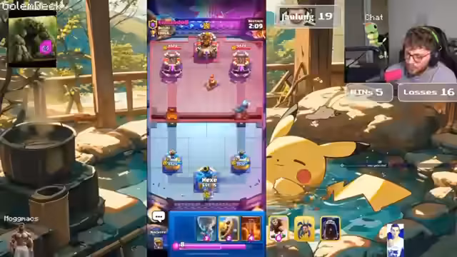 02:24:49In den frühen Phasen des Streams wird das Gameplay von Clash Royale dominiert. Der Streamer analysiert kontinuierlich seine Spielzüge und die seines Gegners. Er experimentiert mit verschiedenen Decks, insbesondere mit einem Pekka-basierten Deck, und äußert Frustration über wiederholte Fehler in der Rotation und der Kartenplatzierung. Entscheidungen, wie der Einsatz von Rage oder das Verteidigen an einer bestimmten Seite, werden live diskutiert und oft im Nachhinein als schlecht bewertet. Der Fokus liegt auf dem Versuch, durch kontinuierliche Angriffe und Drucksituationen den Gegner zu überwinden, auch wenn dies oft zu defensiven Rückschlägen führt.