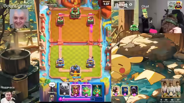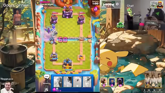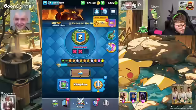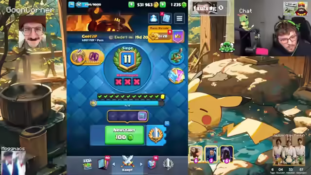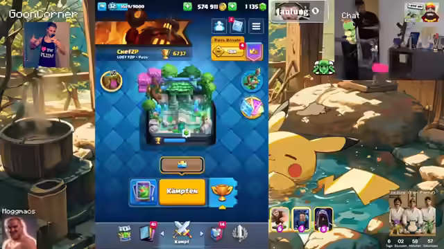 06:10:47Es wird diskutiert, welche Evo-Karte als nächstes geholt werden soll, wobei die Hexe als vielversprechend erscheint, aber das Deck dadurch zu teuer werden könnte. Es wird über vergangene Free2Play-Erfahrungen gesprochen, bei denen der Streamer gebannt oder gehackt wurde. Anschließend werden Common Cards im Spiel analysiert und überlegt, welche aufzuleveln sind. Der Streamer teilt mit, dass er im Ausland kaum gespielt hat. Es folgen weitere Clash Royale Runden, die von Frustration über das Spielgeschehen geprägt sind. Der Streamer äußert seinen Unmut über bestimmte Kartenkombinationen und Spielweisen der Gegner. Trotz einiger Erfolge überwiegt der Ärger über unfaire Matchups und den Einsatz von Pay-to-Win Strategien durch die Gegner. Es wird vermutet, dass die Zuschauerzahlen sinken, weil andere Streamer live gegangen sind.