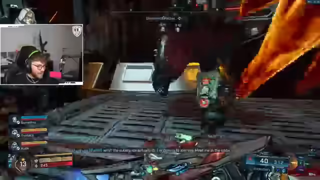 08:03:04Es wird eine Anekdote über einen Besuch beim Friseur erzählt, bei dem der Friseur 78 Jahre alt war. Anschließend kehrt die Gruppe zum Spiel zurück und setzt ihren Weg durch einen Elevator fort. Es wird über die Waffenwahl und den verursachten Schaden diskutiert. Die Gruppe lässt einen Atom-Spawn frei, der ihnen hilft, und navigiert durch das Spiel, indem sie den Rollen folgen. Sie kämpfen gegen Badass-Gegner, die sehr widerstandsfähig sind. Die Gruppe stellt fest, dass sie mehr Munition benötigt und dass sie nicht genug Schaden verursacht. Sie diskutieren darüber, wie das Gameplay von außen wirkt, und bitten den Chat um Feedback. Die Gruppe nimmt eine Nebenmission an und diskutiert, ob sie stattdessen den Boss wiederholen sollen. Die Gruppe kämpft gegen Feinde und stellt fest, dass die Schüsse der Waffen sehr langsam fliegen. Ein Spieler schießt versehentlich auf die Phantome, die für sie kämpfen sollen, was zu Verwirrung führt. Es wird über die Lautstärke der Waffen und die Fähigkeiten der Spieler diskutiert.