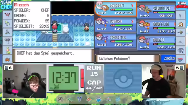 00:00:51Der Stream beginnt mit der Diskussion über notwendige Änderungen im Pokémon-Team, nachdem ein Pokémon im Kampf gegen Bronzong besiegt wurde. Es wird überlegt, wie man am besten zum benötigten Ort zurückkehrt, um das Team anzupassen. Es folgt eine Analyse des aktuellen Teams und die Entscheidung, das neue gefangene Porygon und Nassgnet einzusetzen. Die Frage, ob Nassgnet direkt entwickelt werden soll, wird diskutiert, wobei der Fokus auf den möglichen Attacken liegt, die es lernen kann. Es wird überlegt, welche Attacken für Porygon am besten geeignet sind, einschließlich der Frage, ob Hyperstrahl eine brauchbare Option wäre. Der Chat wird nach Meinungen zu Attacken wie Donnerblitz und Toxin gefragt. Es wird angekündigt, dass donnerstags wieder mit Risen gestartet wird. Es wird die Trio-Challenge von Romatra, Chef und Max erwähnt. Es wird kurz überlegt, ob man Eisenschweif spielen sollte, aber verworfen. Es wird überlegt, welches Pokémon man zuerst einsetzen soll und auf welche Werte man achten muss. Es wird kurz überlegt, ob man Megagne oder Rehornior einsetzen soll.