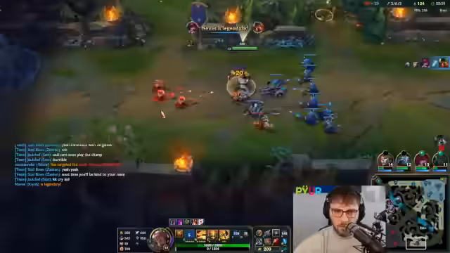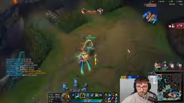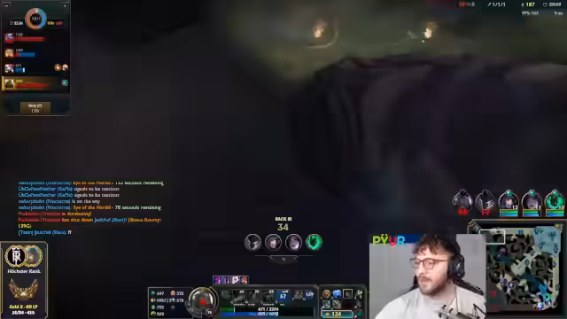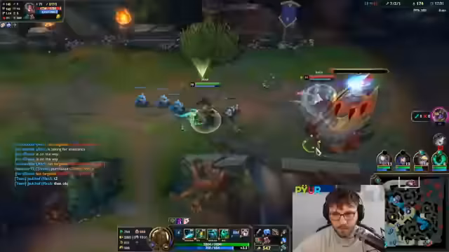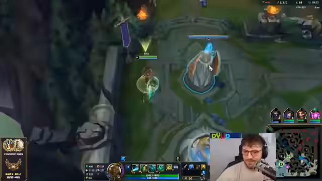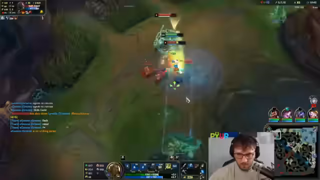 10:34:28Die Midlane entwickelt sich zu einem Schlachtfeld. Der Streamer kämpft gegen einen starken Gegner und gerät in schwierige Positionen, nachdem er sein Flash verloren hat. Es kommt zu intensiven 1-1-Kämpfen, in denen der Gegner sowohl durch Glück als auch durch spielerische Überlegenheit mehrmals knapp überlebt und den Streamer zurückschlägt. Der eigene Champion wird als unspielbar beschrieben und die Lage als geisteskrank eingestuft.