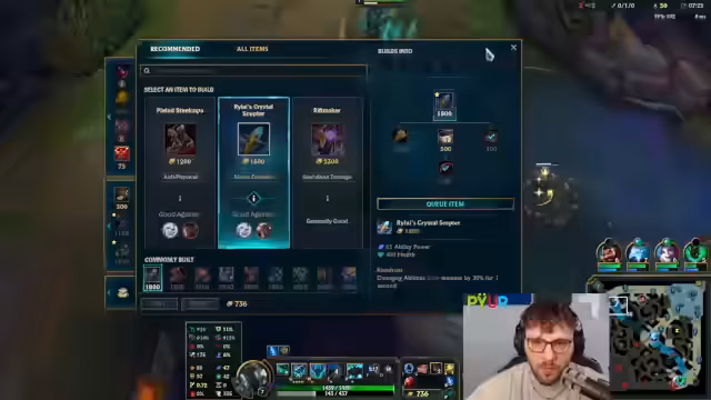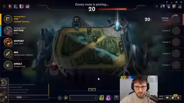 06:09:10Zu Beginn des Streams wird über die neuen Fähigkeiten von Sona gesprochen, deren spätes Spielverhalten als übermächtig beschrieben, aber deren Potenzial noch unklar ist. Die Analyse der Champion-Auswahl im aktuellen Spiel offenbart Frustration: ein First-Pick Kassadin gegen eine gegnerische Konstellation mit Malphite, Fizz, Ziggs und Jinx wird als nachteilig eingestuft, da die eigenen Champions keine klaren Antworten auf die gegnerische Taktik bieten.
