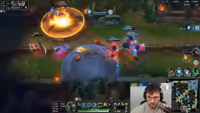 05:20:27Ein langes, intensives Spiel endet schließlich in einem knappen Sieg. Nach fast 45 Minuten kämpfen schafft es das Team, einen entscheidenden Teamfight zu gewinnen, als der gegnerische Yorick eliminiert wird. Der Streamer äußert seine Bewunderung für das Spiel, das er als eines der spannenden der LAN-Party bezeichnet. Er betont, dass der Sieg nur durch Teamarbeit und strategisches Vorgehen möglich war, auch wenn der Gegner als extrem stark galt und beinahe das Spiel für sich entschieden hätte.