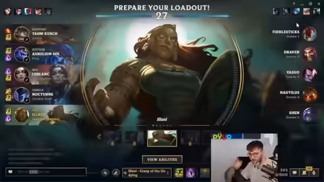 12:32:12Der Stream beginnt mit der Ankunft in einer Full-Emerald-Lobby, was als bedeutender Meilenstein gefeiert wird. Das Ziel ist klar, den ersten Diamond-Rang zu erreichen. Die Stimmung ist jedoch gemischt, da Bedenken bezüglich der Leistung von Ari geäußert werden, die sich von seinem vorherigen Niveau unterscheidet. Der Fokus liegt auf dem Spiel gegen einen Darius, und es wird die Frage aufgeworfen, wie man mit dem Jungle von Kane umgehen soll, insbesondere eine potenzielle gank gegen Darius.