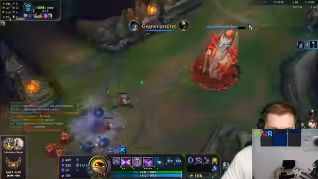08:51:16Der Streamer beschreibt eine Serie von hektischen und entscheidenden Teamkämpfen um wichtige Ressourcen wie den Baron-Nashor. Er zeigt sich beeindruckt von einem geisteskranken Call, der zum Sieg eines Spiels führt, während er andererseits massive taktische Fehlentscheidungen des Teams kritisiert, die zu katastrophalen Niederlagen führen. Der Fokus liegt auf dem Kampf um Vision, umherstreichenden Gegnern und dem unerklärlichen Verlust von Teamkämpfen, die oft im späten Spiel entscheiden.