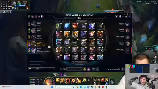 02:50:05Nach dem ersten Spiel wird in der Champion-Auswahl ein schwieriges Matchup befürchtet, insbesondere wenn der Gegner Malsar auf der Top-Lane pickt. Der Streamer entscheidet sich für ein riskantes Ignite-Spell. Die Diskussionen im Stream drehen sich um die unerwartete Emerald-Elo eines Spielers und die verbuggte Champions-Select-Musik im Client, was den Ablauf stört. Es werden aggressive Lineups wie Jhin und Maokai ins Auge gefasst, um den Druck aufzubauen.