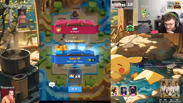 Bei Clash Royale wurde der Fokus auf eine Free2Play-Challenge gelegt, wobei ein Deck mit Evo-Mega-Knight und einem auf Level 10 gelevelten Pekka zum Einsatz kam. Am Nachmittag wurde ein Quiz-Duell um 17:30 Uhr durchgeführt. Der Stream endete mit einer League-of-Legends-Session.