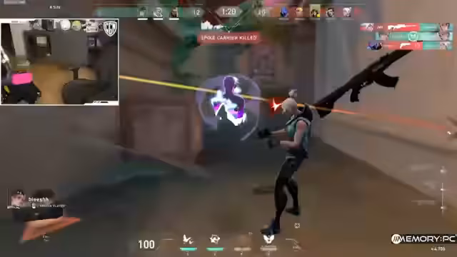 00:20:00Die Konzentration verlagert sich stärker auf das eigene Spielverhalten und die Rolle des Streamers im Team. Er analysiert seine Entscheidungen, wie die Platzierung von Fähigkeiten und das Timing von Ultimate-Attacken. Technische Aspekte wie Ping- und Smokes-Systeme werden diskutiert, wobei der Streamer eine Änderung im System feststellt, die das Pingen erschwert. Er zeigt auch seine Frustration über Fehler im eigenen Spiel, wie versehentliches Sterben und unkoordinierte Bewegungen.