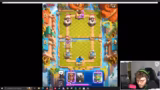 00:03:21Nach der Erklärung des Decks geht der Streamer in die Grand Challenge und startet ein erstes Spiel gegen einen Gegner. Im ersten Zug fehlt dem Streamer eine gute Starthand, weshalb er zuerst Golem spielt. Die grundlegende Strategie ist, den Golem als primäre Bedrohung zu nutzen, während man die Evo-Karten wie den Babydrache einsetzt, um den Golem zu beschleunigen und zusätzlichen Schaden zu verursachen. Der Streamer demonstriert, wie man mit einem gezielten Counter-Push, der durch den Golem-Speedboost verstärkt wird, den Turm des Gegners zerstört und dabei wichtige Platzierungs- und Timing-Aspekte betont.