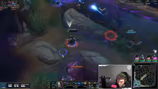 06:50:42Bei den weiteren Spielen mit zufälligen Champions zeigt sich die hohe Frustration des Streamers. Er beschreibt den Gegner als "geisteskranke CC-Maschine" und fühlt sich machtlos, insbesondere Champions wie Kha'Zix, die er nicht gut kontrollieren kann. Er äußert den Wunsch, jeden Champ beherrschen zu müssen, um die herausfordernden Gegen und Meta-Builds besser bewältigen zu können.