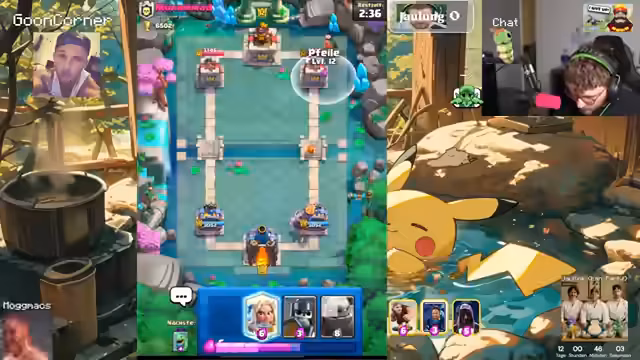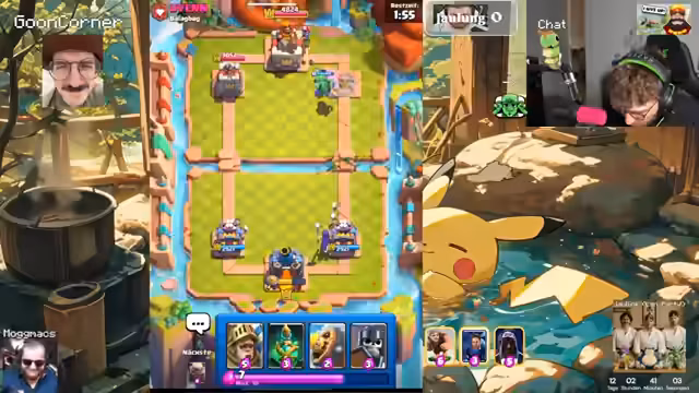02:55:56Der Stream konzentriert sich auf die Auswahl von Clash Royale Champions. Der Spieler diskutiert die Stärken von Karten wie der Ofen und der Queen, wobei der Chat aktiv in die Entscheidungen einbezogen wird. Die Wahl des Hawk Riders gegen Erdbeben-Decks und die Notwendigkeit, einen bestimmten Spell wie den Feuerball zu halten, sind zentrale Themen der anfänglichen Draft-Phase. Der Fokus liegt auf der Erklärung von Meta-Decks und deren Gegenstrategien, wobei der Streamer die potenziellen Stärken und Schwächen verschiedlicher Kombinationen analysiert.