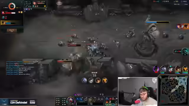 10:52:50Ein chaotischer Teamfight entbrennt, in dem der Streamer als Vex gezielt gezielt wird, obwohl er niedrige Lebenspunkte hat. Ein gezielter Flash des Gegners führt zu einem überraschenden Sieg des gegnerischen Teams. Das eigene Team reagiert darauf mit einem gezielten Stomp auf dem Läufer und erobert mehrere Türme, während die Kommunikation über das Vorgehen, insbesondere bei der Baron-Barriere, weiterhin uneinheitlich ist.
