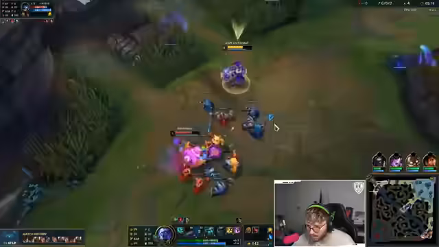 04:15:26Im späteren Verlauf des Spiels schafft der Streamer einen Double-Kill und ist optimistisch, einen Comeback-Fight zu gewinnen. Er gibt seinem Team klare Anweisungen, langsam vorzugehen und den Garen zu fokussieren. Trotzdem macht er einen Fehler und stirbt, weil er zu weit in den Kampf zieht. Er wendet sich wieder seinem körperlichen Zustand zu und erwähnt, dass es ihm wieder besser geht. Das Team scheint immer noch chaotisch und unkoordiniert zu spielen, was den Streamer verärgert.