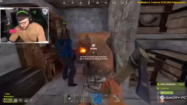02:17:39Zu Beginn des Streams konzentrieren sich die Spieler auf das Sammeln von Ressourcen wie Holz und Stein. Sie bauen eine Werkbank und planen den Bau eines Steinofens zur Metallgewinnung. Es kommt zu technischen Schwierigkeiten bei der Autorisierung der Spieler in der Basis. Gleichzeitig wird die Notwendigkeit eines effizienten Kistensystems diskutiert, um Ressourcen ordentlich zu organisieren und Ressourcen-Respawn sicherzustellen.