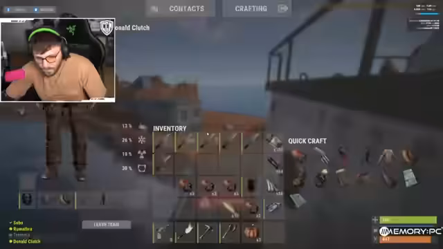 08:09:07Die Gruppe plant einen Oil Rake, um an Explosive Ammo zu gelangen und ein Boot zu starten. Es werden Macheten gecraftet, um Türen aufzubrechen, wobei der Bedarf auf etwa zwölf Macheten geschätzt wird. Es wird diskutiert, ob es ausreicht, nur eine Tür aufzubrechen, aber man einigt sich darauf, drei Türen zu zerstören. Die Gruppe bereitet sich darauf vor, die Basis eines anderen Spielers zu überfallen und zu beklauen, wobei der Fokus auf Holztüren liegt, die leichter zu zerstören sind. Es werden eigene Türen und Code Locks mitgenommen, um die überfallene Basis zu sichern. Romatra wird gebeten, Türen mit Schlössern zu bauen, während andere Macheten craften. Es wird überlegt, den Ofen zu automatisieren und die Karte mitzunehmen, um direkt zum nächsten Ziel, der Red Karte, weiterzuziehen. Die Gruppe packt Munition und Türen ein und freut sich auf das bevorstehende Abenteuer. Es wird festgestellt, dass Max, der zuvor auf striktes Spielen gepocht hatte, das Spiel verlassen hat, was für Verwunderung sorgt.