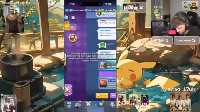 03:36:38Der Stream konzentriert sich auf intensive Gameplay-Sessions des titelgebenden Spiels, wobei der Fokus auf Clash Royale liegt. Der Streamer reflektiert über seine eigene Leistung, kritisiert seine Spielentscheidungen und analysiert die Deck-Auswahl seiner Gegner. Besonders häufig wird über das Spieldeck '2.6' diskutiert, welches als sehr stark, aber auch als harter Gegner für sein eigenes Deck angesehen wird. Auch Matchup-Analysen und die Wirksamkeit bestimmter Karten wie dem Nado sind wiederkehrende Themen.