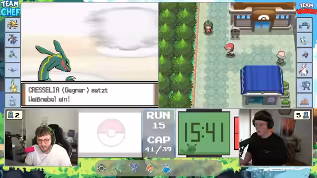 04:06:05Es wird überlegt, wie man gegen bestimmte Attacken vorgehen soll, insbesondere gegen Holzhammer, eine starke Pflanzenattacke. Der Einsatz von Celebi mit Toxin und Egelsamen wird diskutiert, um den Gegner auszuspielen. Es wird erkannt, dass Genesung und Toxin eine gute Kombination sind, um den Kampf zu kontrollieren. Der Chat wird ermahnt, keine Spoiler zu geben, um die Strategie nicht zu verraten. Celebi erweist sich als wertvolles Pokémon in diesem Run. Es wird überlegt, ob der Gegner als nächstes einen Trunk einsetzen wird. Der Streamer setzt Zauberblatt ein und verhindert so möglicherweise den sicheren Tod. Es wird festgestellt, dass der Gegner besiegt ist und die Moderatoren aus dem Modus genommen werden können. Holzhammer wird als gefährliche Attacke wahrgenommen, die man nicht unterschätzen sollte. Es wird spekuliert, ob der Gegner ein Stahltrainer ist und ob Rexblisa eingesetzt werden könnte. Nach dem Kampf wird beschlossen, das Pokémon-Center aufzusuchen und zu speichern.